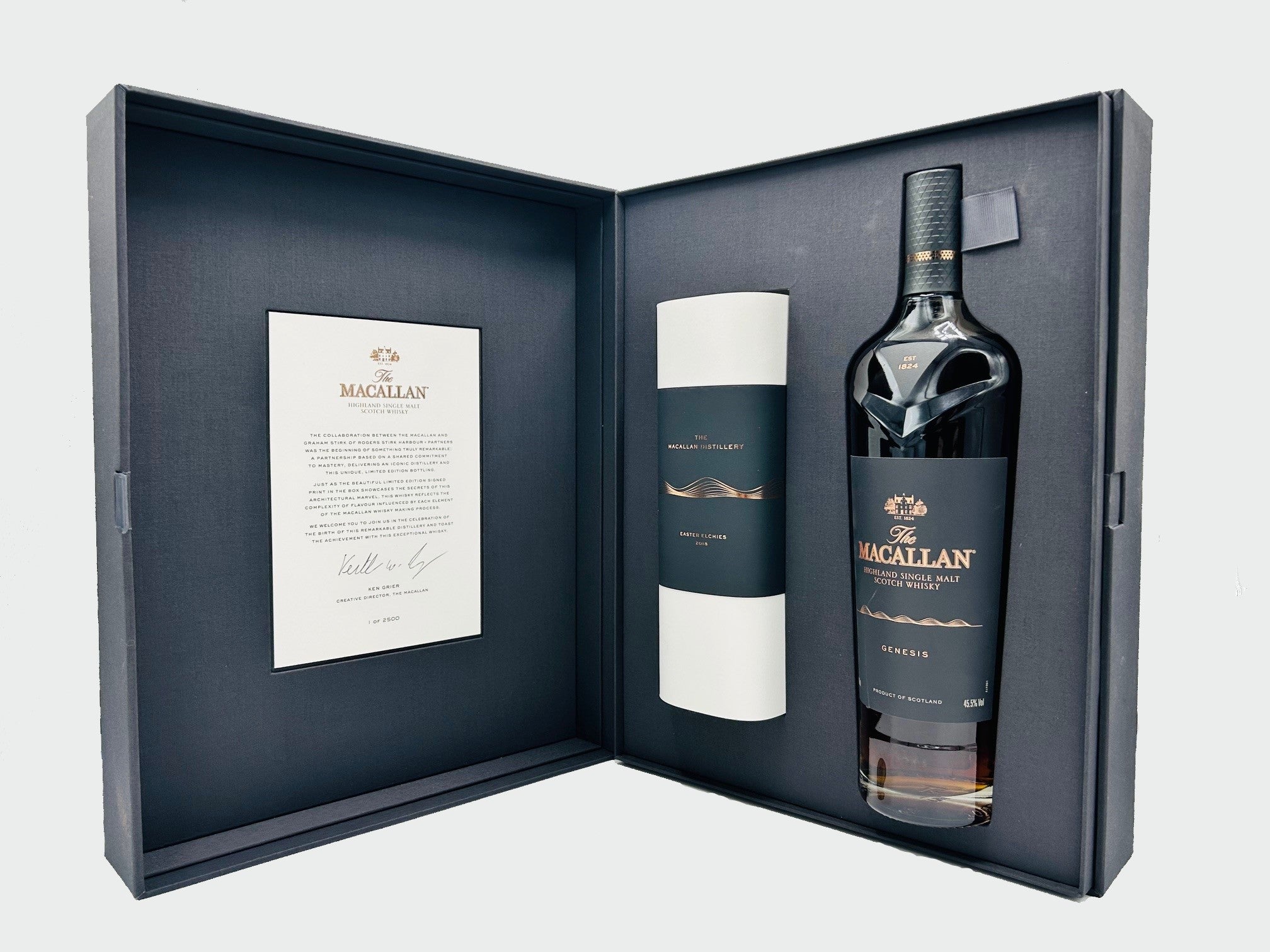 Commemorating the 2018 inauguration of Macallan's architecturally distinctive Speyside distillery, this exceptional single malt represents a pivotal moment in the brand's heritage. Restricted to merely 2,500 bottles worldwide, Genesis has established itself as a prized acquisition for serious collectors. The presentation elevates its desirability further, incorporating a signed architectural print that reflects the distillery's landmark design. This release captures both the craftsmanship of the whisky itself and the significance of the facility it honours, making it a notable addition to any distinguished collection.